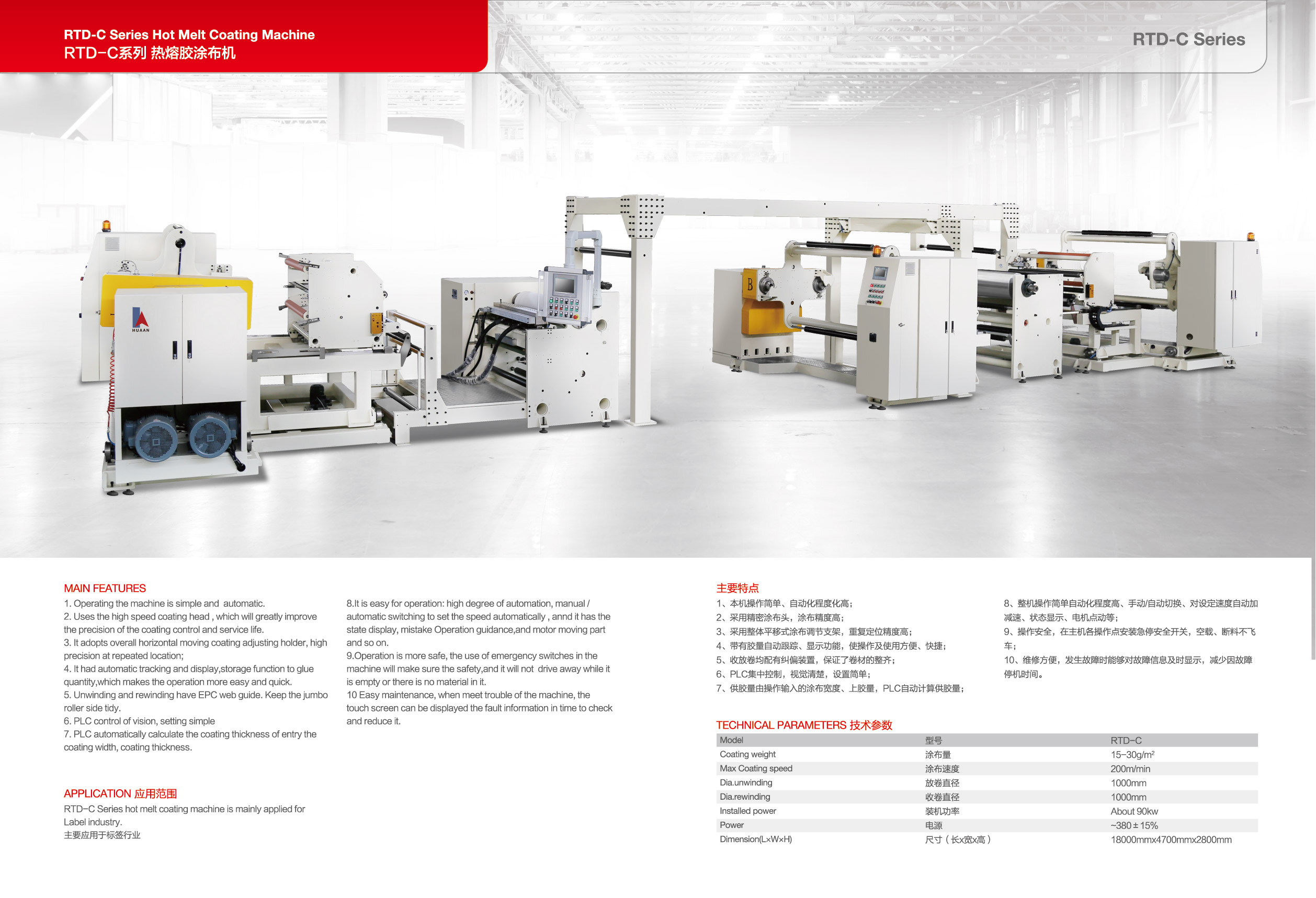 多年來,華安機械為熱熔膠涂布、復合領域提供了品種繁多的設備,產品廣泛應用于膠粘制品、防水、標簽、汽車內飾、醫(yī)用敷料、一次性婦幼用品、紙箱包裝、廣告耗材、鞋材、濾清器、熱熔膠膜、無紡布、化妝品填充、家具粘合、車燈粘合、電子、軟包裝、功能性服裝復合面料等多種行業。已經成功推出了RT系列、RT-B系列、RJT系列、RT-C系列等涂布機;新世紀2000A系列、H088、H288、H388系列噴膠機;PUR系列吸盤式熱熔膠機;RF系列復合機......
